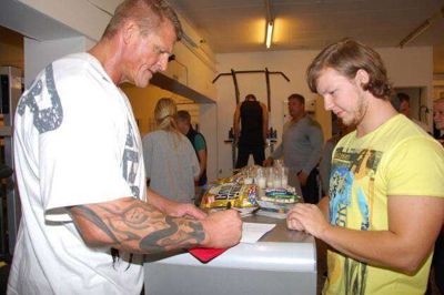 Der blev filmet, fotograferet og skrevet autografer,da den kendte bodybuilder og nu også Hollywood-skuespiller Kim Kold besøgte Daugbjerg Motion.